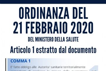 ESTRATTO ORDINANZA MINISTERO DELLA SALUTE DEL 21-2-2020