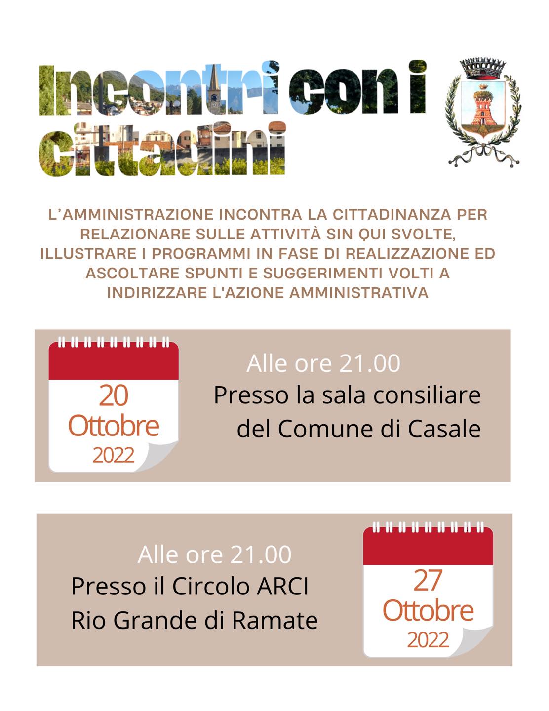 - 20 ottobre ore 21: Sala Consiliare del Comune di Casale Corte Cerro