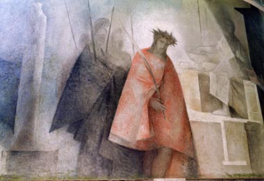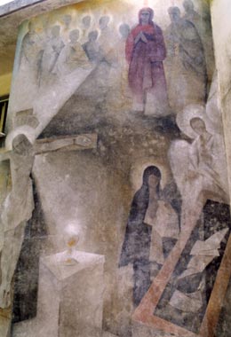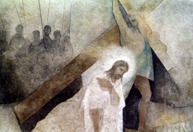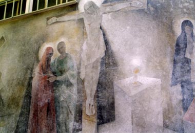 La Passione di Gesù. Particolari delle raffigurazioni presenti sulla facciata esterna della Chiesa. Realizzazione di Theodore Strawinsky. Le Fotografie sono disposte in ordine reale di Visione: