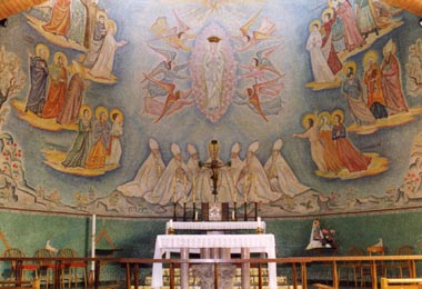 Preziose sono le raffigurazioni murali del pittore Theodore Strawinsky. All'interno della chiesa si può ammirare il bellissimo mosaico dedicato alla Vergine che ricorda la proclamazione del Dogma dell'Assunzione , fatta da Papa Pio XII il 1° novembre 1950; questi appare attorniato da Vescovi, mentre santi antichi e recenti fanno variopinta corona alla Vergine portata dagli angeli.