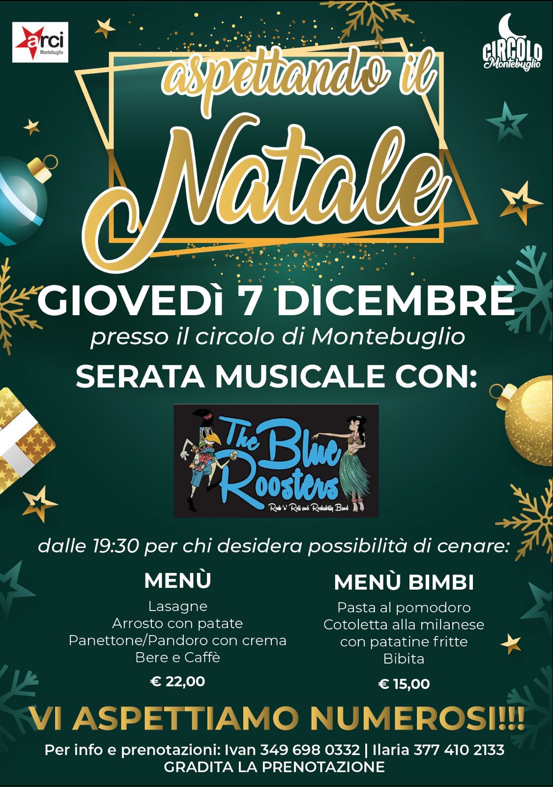 Giovedì 7 Dicembre presso il Circolo di Montebuglio, serata musicale con: THE BLUE ROOSTER.