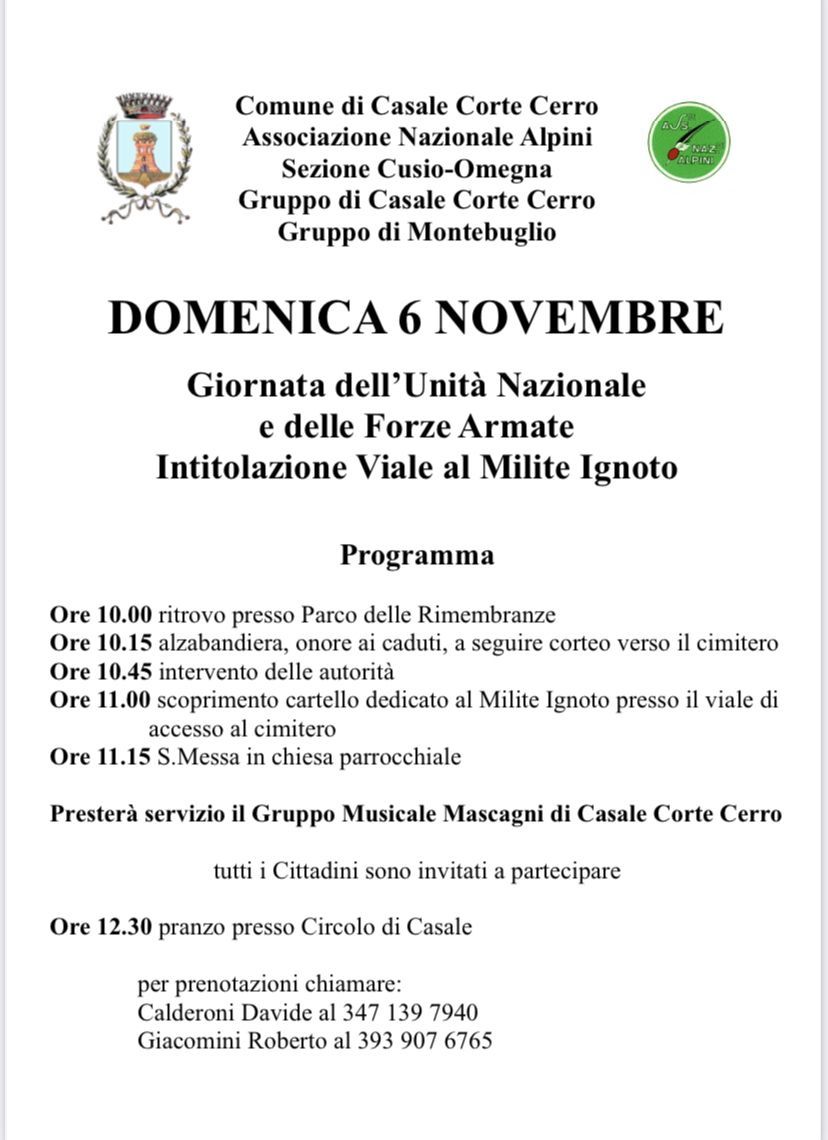 Ore 10.15 alzabandiera, onore ai caduti, a seguire corteo verso il cimitero Ore 10.45 intervento delle autorità