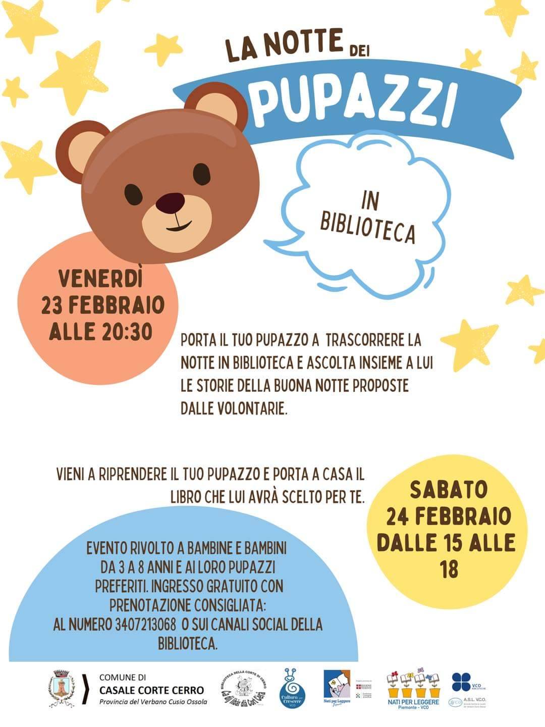 Aspettiamo tutti i partecipanti per leggere tante belle storie insieme ai nostri amati pupazzi, che resteranno ospiti della Biblioteca per tutta la notte.