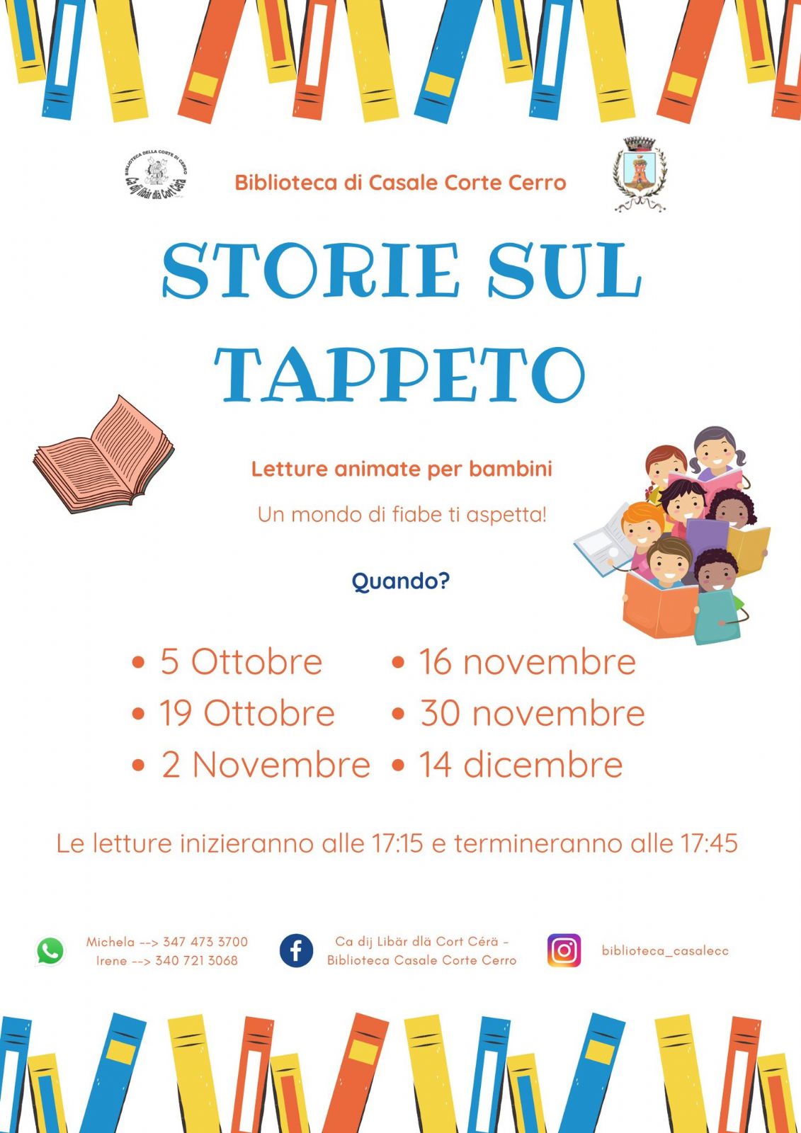 Letture a voce alta per bambini e bambine. Dalle17.15 alle 17.45.