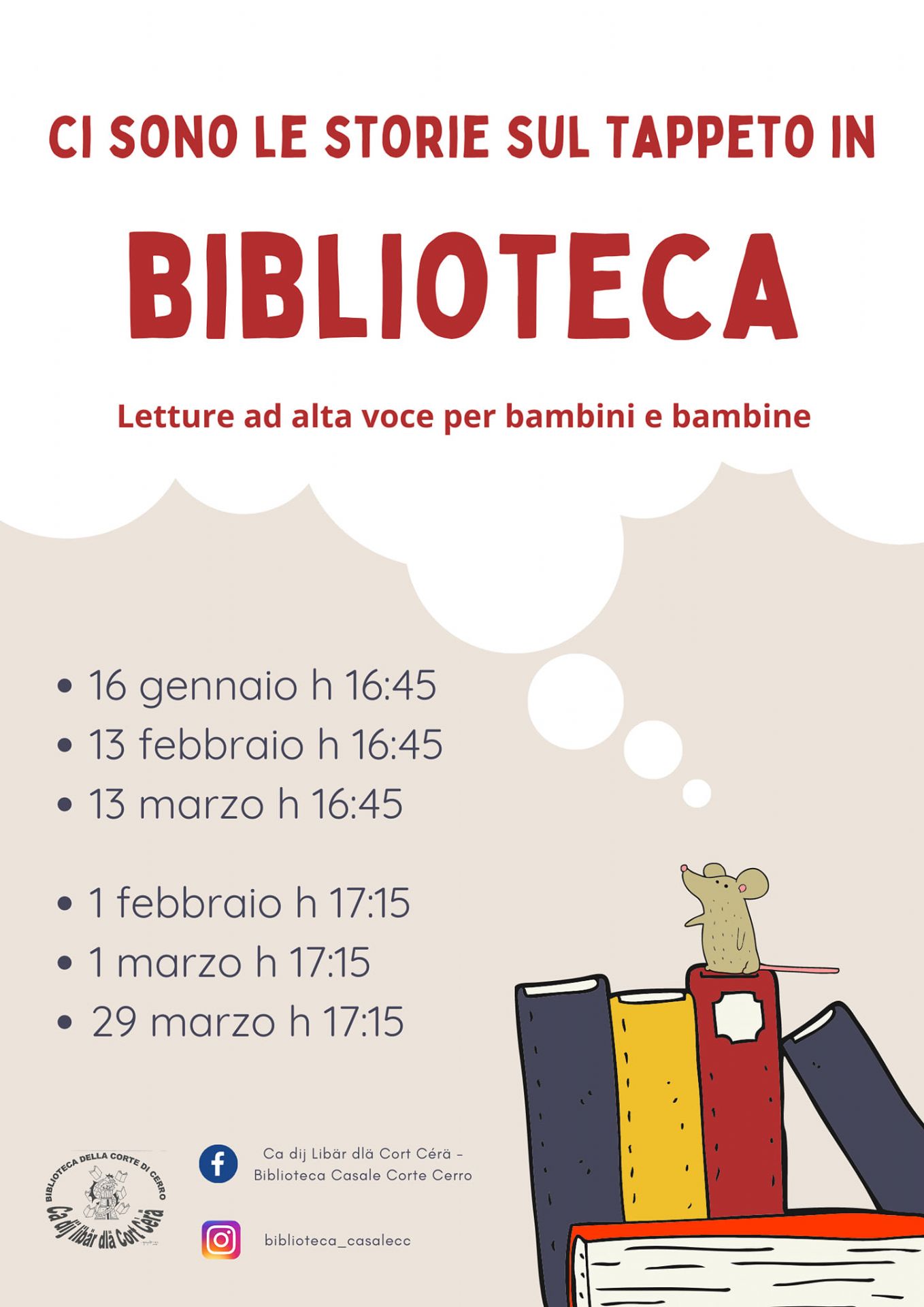 Letture ad alta voce per bambini e bambine in biblioteca a Casale Corte Cerro